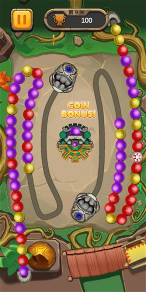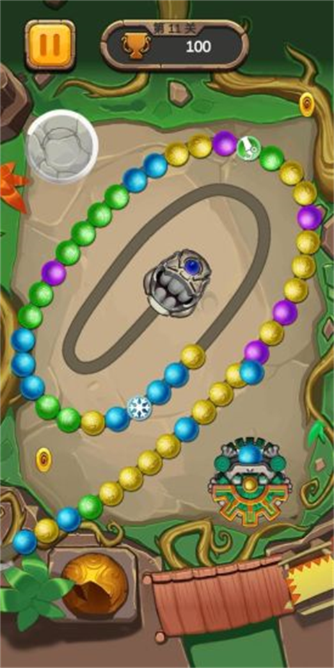 减短游戏时间。祖玛游戏是积分制度,积分足够以后,游戏便会结束。游戏时,周围会出现金币,尽量打金币,可以让时间大大缩短。