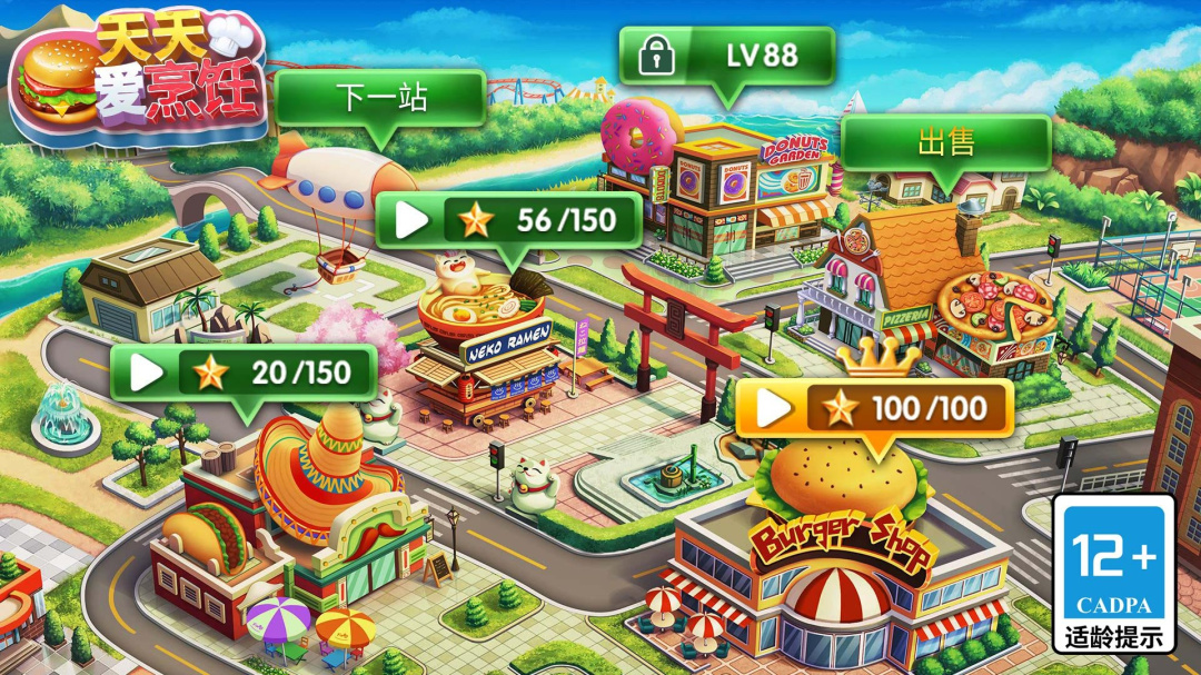 3、体验各大主题餐厅,以及超过400个的精致关卡;