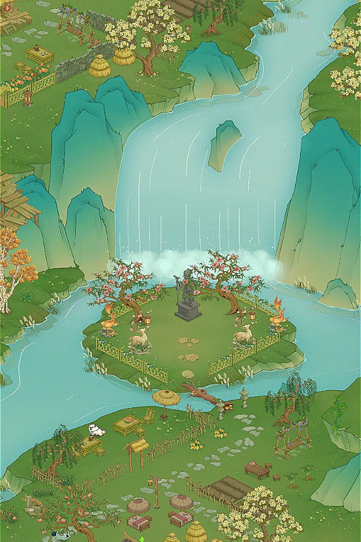 《桃源记2》场景主要分为桃源山谷主场景大地图、森林地图以及陶先生家地图,整体为国画风格,展现出中国传统艺术瑰宝的美丽。