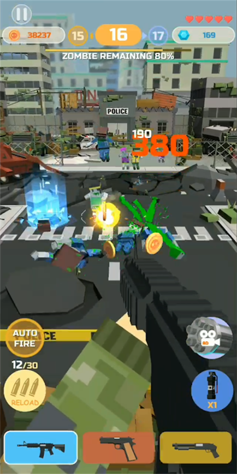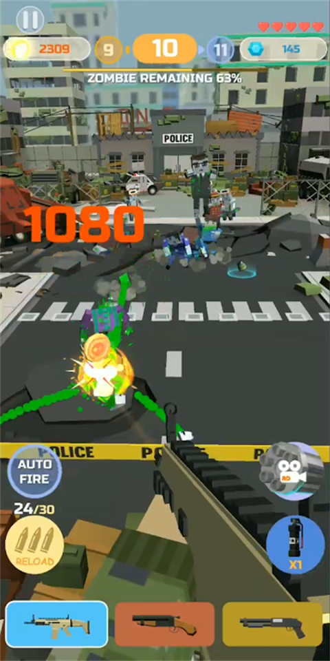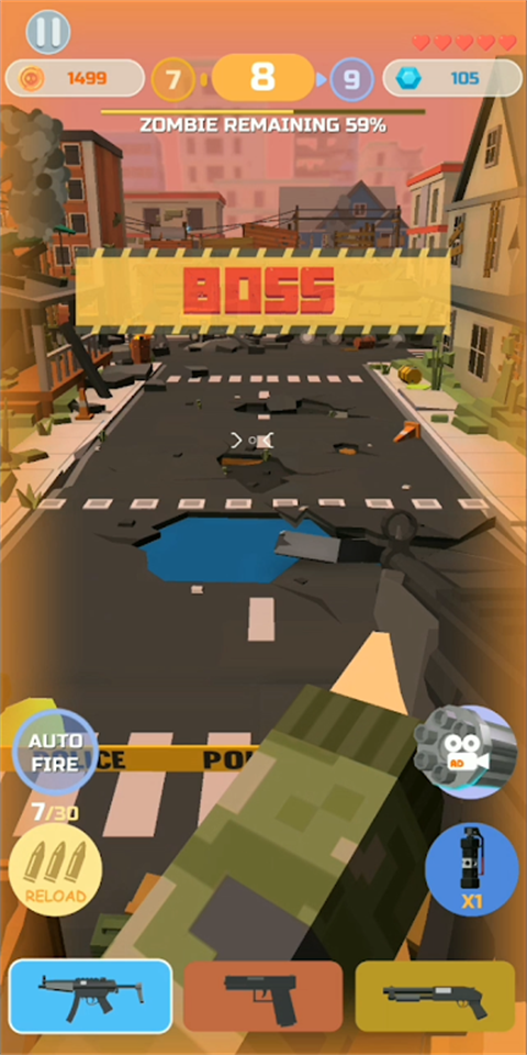 5.在这些M1911,MP5,AK47武器中,支持长按攻击按钮,进行扫射僵尸。