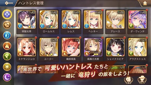 将您最喜欢的无狩猎者设置为标志女孩,并与无狩猎者进行各种对话!
