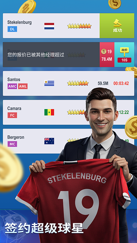 带领你的球队征战四方,培养巨星球员,冲击最高荣誉,书写属于你的足球史诗!
