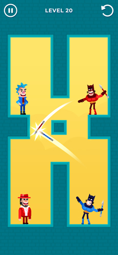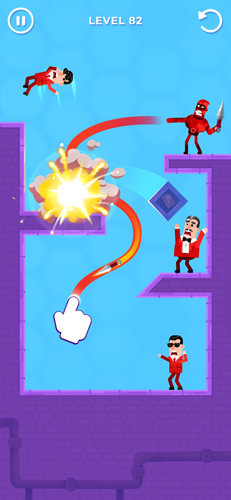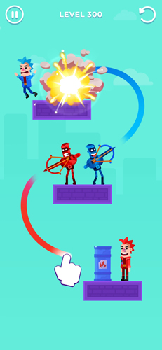 游戏中你可以根据敌人的位置,给自己的弓箭手绘制一条射击轨迹让箭可以直接射中敌人即可完成通关,每个关卡上敌人的位置都是有所变化的,你要利用物理反射的原理来击倒敌人,越往后面关卡的难度就会越大