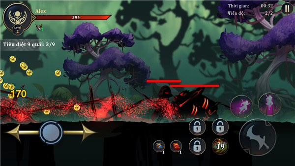3、开始旅程,你必须控制亚历克斯摧毁森林中的怪物,他们会攻击亚历克斯每当他们遇到,怪物是无限的,他们繁殖和增殖非常迅速。英雄不仅要与普通的怪物战斗,还要与具有巨大伤害和极其危险技能的老板战斗。战斗到底-否则就死