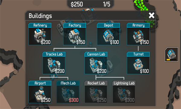 4、选择右下角则是建筑,玩家可以在这里购买需要建造的建筑;