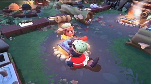 4、未烹饪的食材可以直接丢出一段距离,比如米饭可以丢到煮锅里,肉类可以丢到平底锅中,生食材是可以直接穿过传送门的。