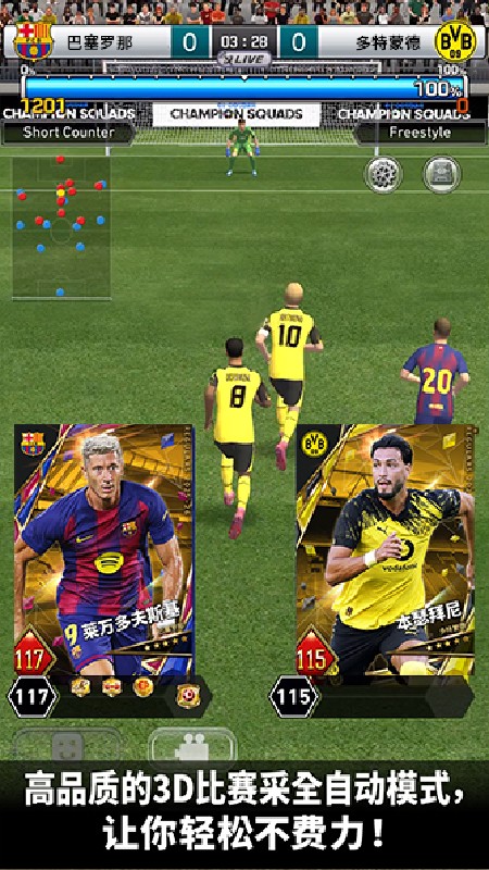 游戏通过KONAMI正版授权收录超千名真实球员数据与动态卡面,3D引擎精准还原球场细节与动作捕捉。闪卡系统通过抽奖概率获取,提供属性加成与专属动态特效,兼顾收藏价值与战力提升。