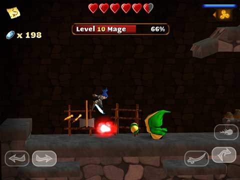 3、玩家操纵的是一名绿色少年(会二段跳的绿色少年),双击移动可以快跑,通过挥刀剑、舞魔法、道具的运用以及跑跳的完美结合来铲除一切障碍解开所有谜题,并最终让光明与正义之火重燃于这片大地