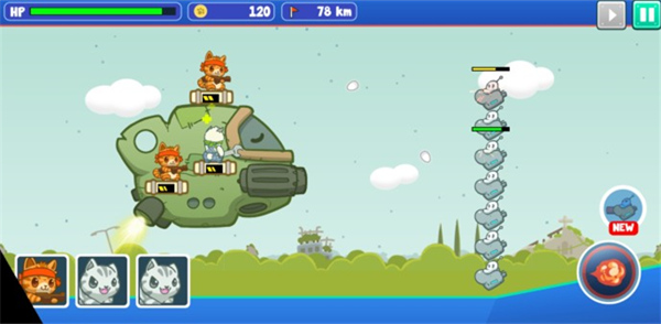 玩家需要指挥喵星人军团打败入侵者。玩家只需要将喵星人拖到飞船上,他们会自动战斗,争取让飞船行驶的越远越好。《决战喵星》也叫《淘气猫咪》、《淘气猫咪战斗团》