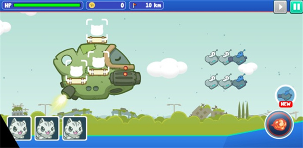 游戏中玩家要拖动猫咪到飞船上,猫咪会自动攻击敌人,但是猫咪在战斗中会消耗体力,玩家们记得要及时替换猫咪。