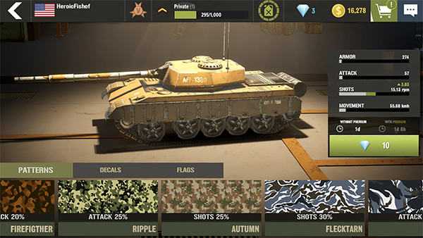 各式各样的装甲战车都很丰富,你可以解锁他们的战车,升级各种属性和加强火力。