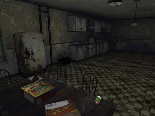 1、主人公被打晕后醒来在第一层的客厅,如果向左走会触发遇到女鬼,需要赶紧躲避到柜子中,一楼最右侧仓房中有柜子可以躲避。右手边沙发处可以捡到手电,手电有电池需要找更多的电池。进入一层右侧的厨房,餐桌上有电池,笔记,日记,右边桌子上有电磁波可以用来测量和鬼的距离。在橱柜处可以找到盐,盐可以用来攻击鬼,钥匙随机在冰箱,保险包和橱柜中找到,它可以用来打开二楼门。