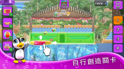 可教导海豚的花样动作有80多种,其中包括疯狂开瓶器、耀眼甜甜圈跳和彩蛋打碎击!选出最喜爱的动作并将它们组合到自己创建的新关卡中。这很简单!你的朋友和全世界的其他玩家都可游玩你创建的关卡。他们将为你的关卡评分,从而帮助你进入排行榜前列。当然,你也可游玩其他玩家创建的关卡-当前玩家创建的关卡已经超过了50万!