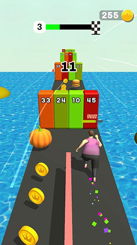 游戏中走在路上捡到更多的钱。用这些钱来提升你的技能。游戏各种各样的舞台设计非常有趣,可以轻松选择参加。我有更多的乐趣。在进行减肥宣传的路上有很多食物的奖励。移动水面保持重心。如果掉进水里,挑战就会失败