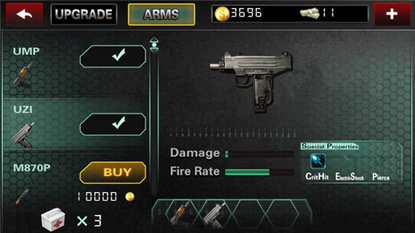 9、完成任务或保存的幸存者,赚取奖金硬币购买/升级武器或购买可选的用品。