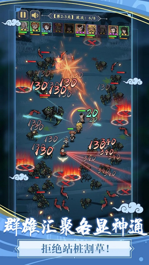 该游戏融合了割草以及贪吃蛇两种玩法,玩家们需要控制由侠客们组成的一字长蛇阵,获取场景内的资源强化自己,清理附近的怪物