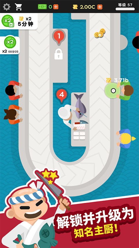 6、解锁并升级为知名主厨,疯狂吃货可以助你一臂之力!收益轻松翻倍