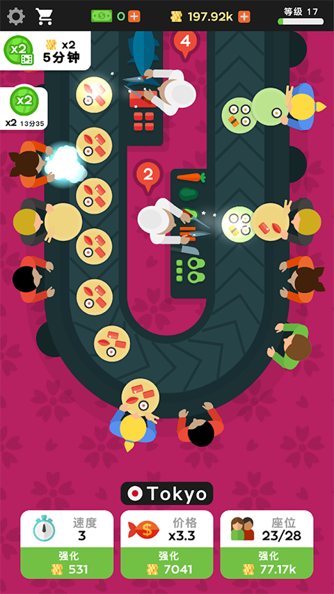 一款主打寿司店经营相关玩法的手机游戏。趣味的游戏内容加上放置的养成模式给你带来更为轻松的体验,让你经营自己的寿司店,更好的赚钱以及扩大