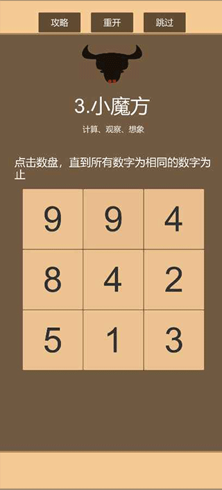 原创精品独立游戏,以精炼的九关设计挑战玩家的智慧极限。每道题目都经过精心挑选,特别是3、6、9BOSS关,极具挑战性和趣味性,值得反复玩味。游戏融合了多个益智小游戏的元素,内容丰富且经过细致打磨,为玩家带来物超所值的体验。