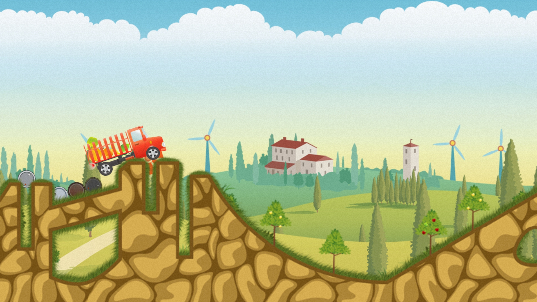 卡通风格的冒险游戏,游戏中玩家需要去控制你的卡车行驶在不同的道路上,你需要去完成游戏中的运输任务,这是非常考验你的操作水平的,玩家需要利用地上的木块,石头,滚木,油桶等来通过障碍。快来运送货物吧。