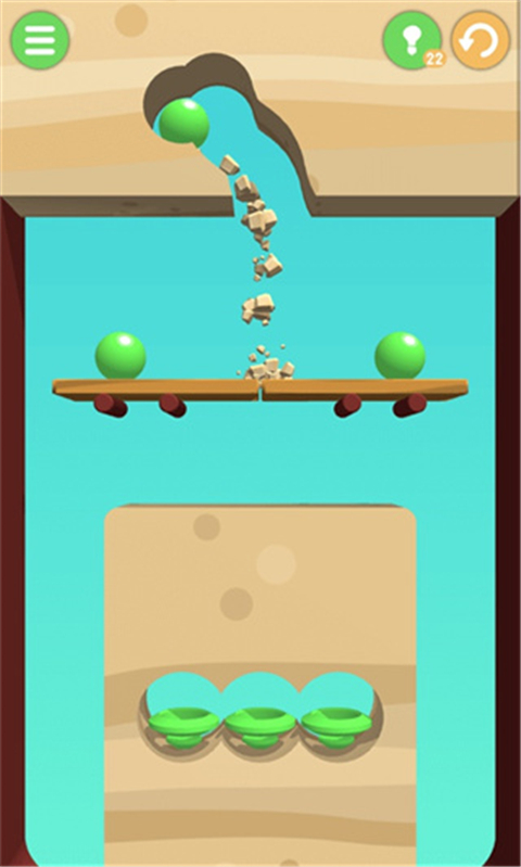 《超级挖坑大师》是一款轻松有趣的休闲游戏。用你的手指来控制挖掘吧,将小球引导进入杯子里即可过关。通常过关需要一点技巧,有时候还需要利用物体的速度,有时还得利用物体的碰撞反弹,大部分情况下还是以你的直觉为准。这里一共有380个关卡等你来挑战。