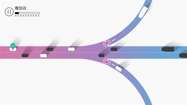 在每辆小车所进行通过的过程来说的话,游戏都是依靠其中的节奏来进行通往每一个车辆的前进,所以后期在路途方面的增加,其中游戏也会通过上下两方面的叠加形式给玩家带来一些视觉的障碍,所以在通过节奏方面的通过失败也要小心所进行观察部分其他路线所出现的车辆,是否会对于我们层对应的威胁,这也是游戏对于另一种难度上的提升,那就是玩家得把控节奏方面的改变和其中前方所出现的不同车辆方面的出现