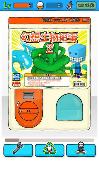 扭蛋里的道具都是看也看不懂的怪异玩意儿,或者让人忍不住想收集的奇妙物体。出现什么全看运气!