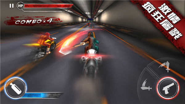 2、玩家在游戏中将驾驶摩托车与其他菜鸟进行殊死搏斗,感受到紧张刺激的战斗快感。