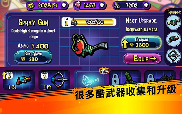 2.通过关卡后,我们会继续得到更多的武器和道具。这些东西的类型是不同的。当玩家在后面的关卡中使用它们时,他们可以获得更多帮助,我们也可以更轻松地通过关卡。