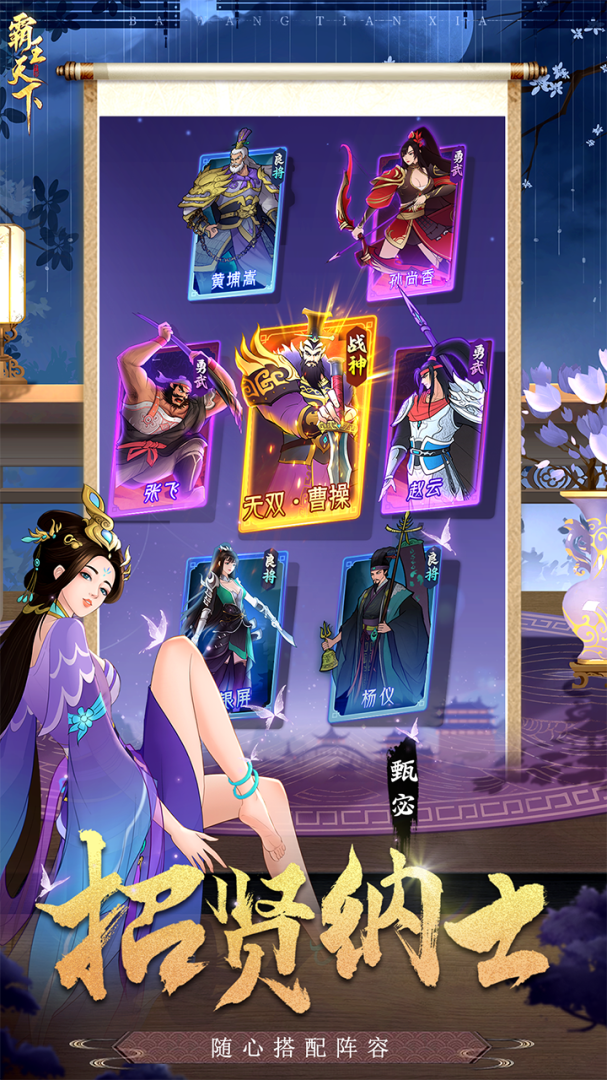 全新三国卡牌对战手游---霸王天下,以经典三国为题材背景,招募各路英雄豪杰攻占更多的城池;这款三国手游与其他不一样的点在于它的画风融入了卡通的元素,玩起来没有任何的负担,更加轻松,而且物品装备都是随便爆,新玩家上新就送福利