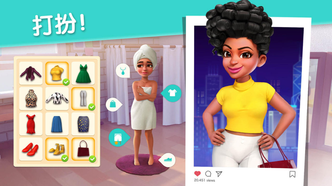 从职场新人到科学家的角色设定赋予改造故事感,衣橱系统支持风格化搭配。任务推进解锁设计资源,兼顾单局休闲与长期审美成长,满足时尚爱好者的创造欲。