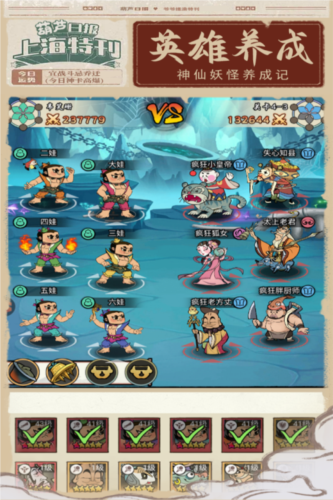 葫芦娃各显神通是一款以经典动画片葫芦兄弟为背景的国风手绘风格休闲放置手游。玩家可以收集并养成自己喜欢的葫芦娃角色,每个葫芦娃都有独特的技能和神通,可以在战斗中发挥重要的作用。除了主线剧情外,游戏还有多种玩法,如挑战葫芦山、神兽试炼、海岛试炼等,玩家可以通过这些玩法获得丰富的奖励,提升角色的能力。玩家可以与其他玩家组队,共同挑战更高难度的关卡,培养村庄功法,共同成长。