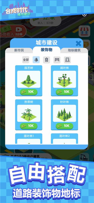 2、游戏中你可以不断的合成,让你的建筑升级的更加豪华,这样你可以获得更多的收益,让你的城市发展的更好