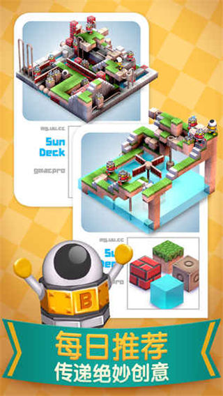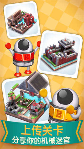 「机械迷宫」是一款3D益智解谜游戏。在以方块搭建的3D迷宫中,玩家要通过控制呆萌的机器人,闯过重重阻碍和机关,抵达每一关的终点。游戏画面精致,关卡设计精巧,轻松舒缓的音乐给玩家无比惬意的感觉。游戏含有50个解谜关卡,同时将支持关卡编辑器让玩家自行创建关卡。完成主线仅仅是开始,做好烧脑的准备了么?