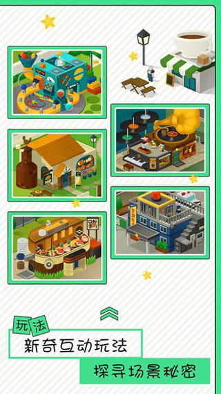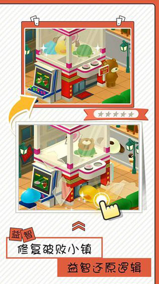 在Q趣的神奇小镇中,依靠点击修复被破坏的地方。然而仅仅点击是不够的。要善于地发现小镇中的逻辑,借助运行的规律巧妙地完成修复。