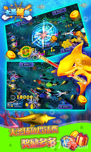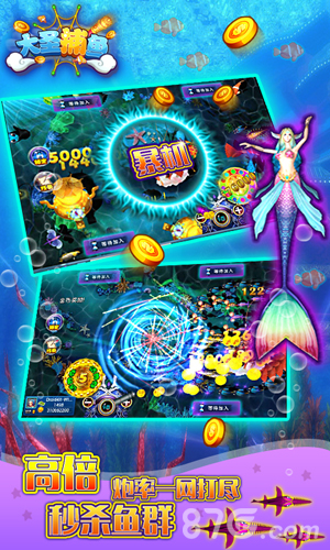 3、加入万人在线竞技场,与来自全国各地的玩家同屏比拼手速与技巧。比积分、抢排名、争榜首,在紧张刺激的对决中展现你的捕鱼实力,赢取专属荣耀与奖励;
