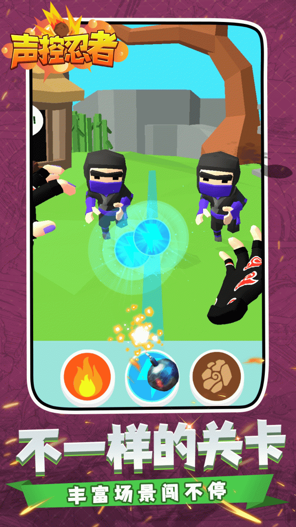 用声音操控忍者前行,避开各种障碍物,顺利抵达终点;