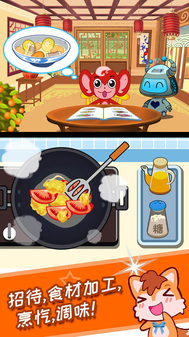 宝宝机器人餐厅是一款模拟经营类餐厅游戏,带领玩家踏上一场独特的美食之旅游戏。从香喷喷的西红柿炒鸡蛋到肥而不腻的土豆烧肉,每一道菜都充满了诱人的风味。而隐藏的蛋糕和披萨更是让人垂涎三尺。在这款游戏中玩家将扮演一位厨师,通过选择食材、加工烹饪,制作出一道道美味佳肴。宫爆鸡丁、白菜豆腐汤、茄角之恋、蚂蚁上树等菜品不仅荤素搭配合理,还汇聚了各地美食的特色,让玩家大饱口福。喜欢这款游戏的玩家千万不要错过,快来下载吧!