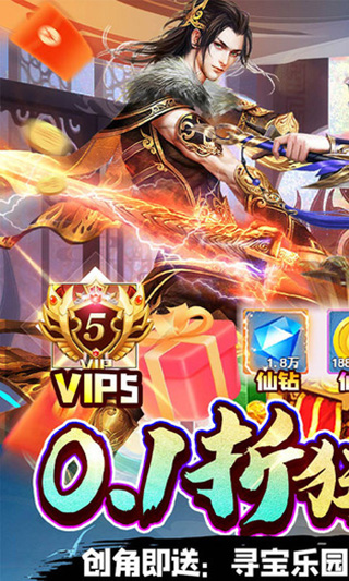 5、创角送至尊VIP(最高VIP),元宝68800,金币500W