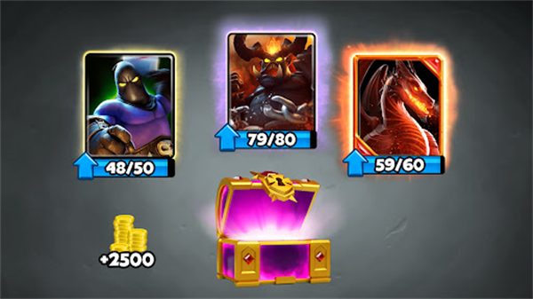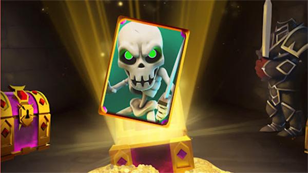 2.带领你的军队打胜仗!打造强大的牌组,摧毁敌军的城堡,部署自己的部队!努力争夺奖杯,不断提高排行!打开宝箱,发现解锁剽悍勇士,强大法术!也许还能得到一张神奇的传奇卡牌!