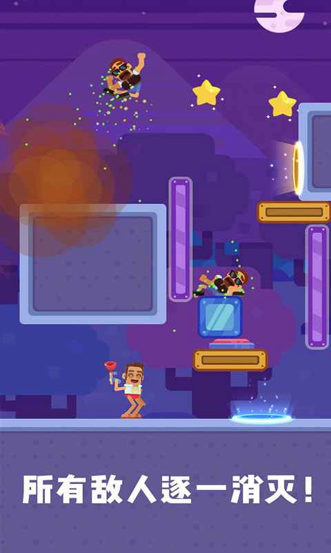 游戏融合了解谜元素,玩家需利用道具的物理效果,如击落、撞击、引爆等连锁反应,巧妙击败敌人。每个关卡都考验着玩家的逻辑思维和创造力。