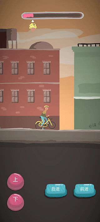 1、首先打开为爱冲锋手游,玩法非常简单,采用了关卡制玩法,例如第一关,玩家将骑着一辆自行车进行冒险;