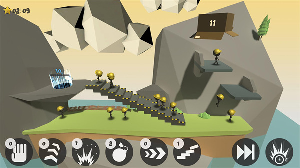 5、将这些火柴人聚集在一起,帮助它们成功的穿越这片区域,利用手中的道具