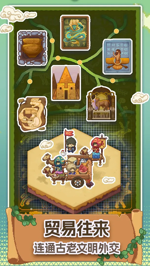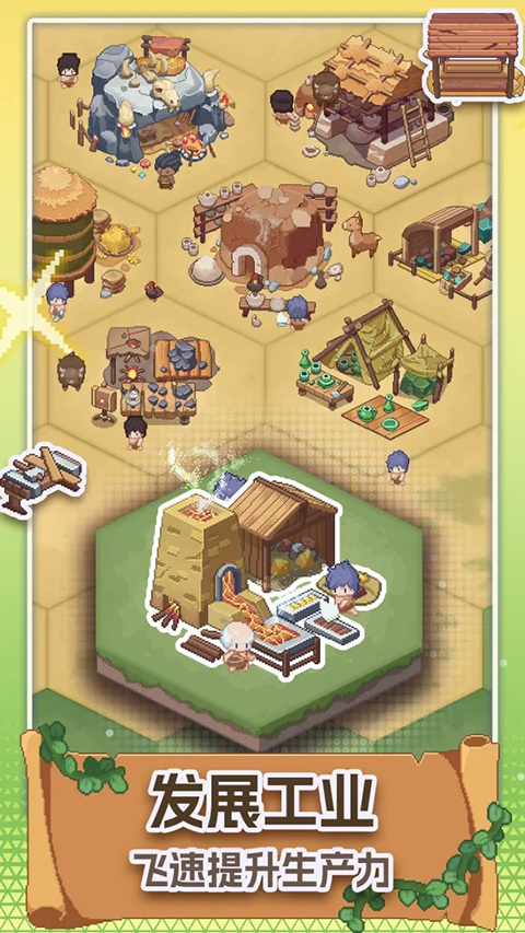 玩家从石器时代的部落酋长开始,带领村民们改造环境,开垦土地。建造各种建筑,建筑物会自动生产繁荣点数,从而推动城市的发展。同时也要合理安排资源的产出,应对村民的各种“无理要求”,对抗天灾或者人祸,一砖一瓦地建造文明奇观,将文明推进下一个时代……