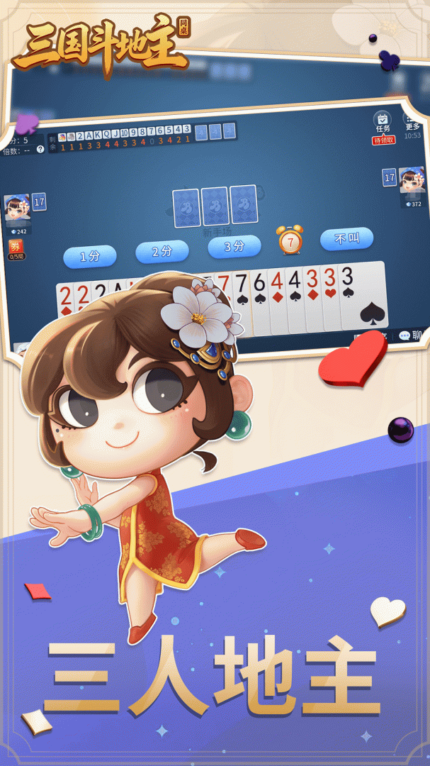 同桌三国斗地主还独具社交属性,支持好友对战和线上PK,玩家可以与朋友一较高下,也可以匹配在线玩家进行实时竞技。在这个过程中,玩家不仅能体会到斗地主的紧张刺激,更能在竞争中增加互动与乐趣。游戏设有各种活动和赛事,刺激了玩家的参与兴趣,让整个游戏社区保持热闹。加上简单直观的操作界面,无需复杂的学习曲线,即便是新手也能迅速上手,享受斗地主的乐趣。