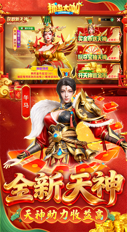武则天等全新天神助阵,自带超高倍率加成,助你收益翻倍。