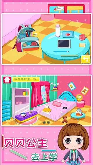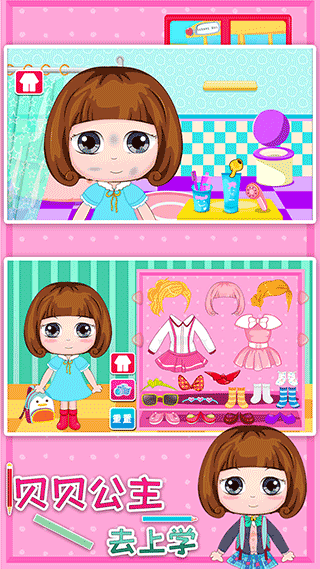 扮演贝贝公主,完成上学前的系列场景事情,包括洗脸刷牙、穿衣打扮、整理房间、制作早餐、整理书包等等,培养孩子的良好的生活习惯