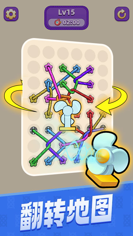 3、解绳子游戏开始时,绳子之间杂乱无章,发挥你的智力去解开这些绳子,让绳子之间不能交叉