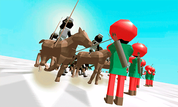 游戏以火柴人为角色原型,有着许多不同兵种的火柴人,玩家需要在每局游戏开始之前排兵布阵,剩下的一切就看命了