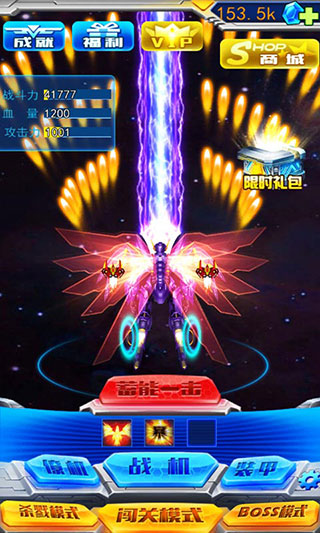 4、玩家的飞机可以进行合体,合体之后会变身成为强大的机甲战士,享受弹幕的狂轰滥炸吧,只要你的火力足够的强大,让BOSS见光死也不是不可能的